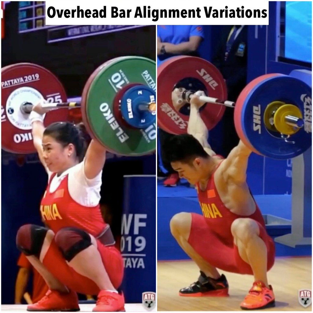 While both of these above variations are seen at the elite level, I believe there is a specific combination that is optimal and indicative of health and longevity: bar in line with the back of a neutral head, and the shoulder externally rotated.