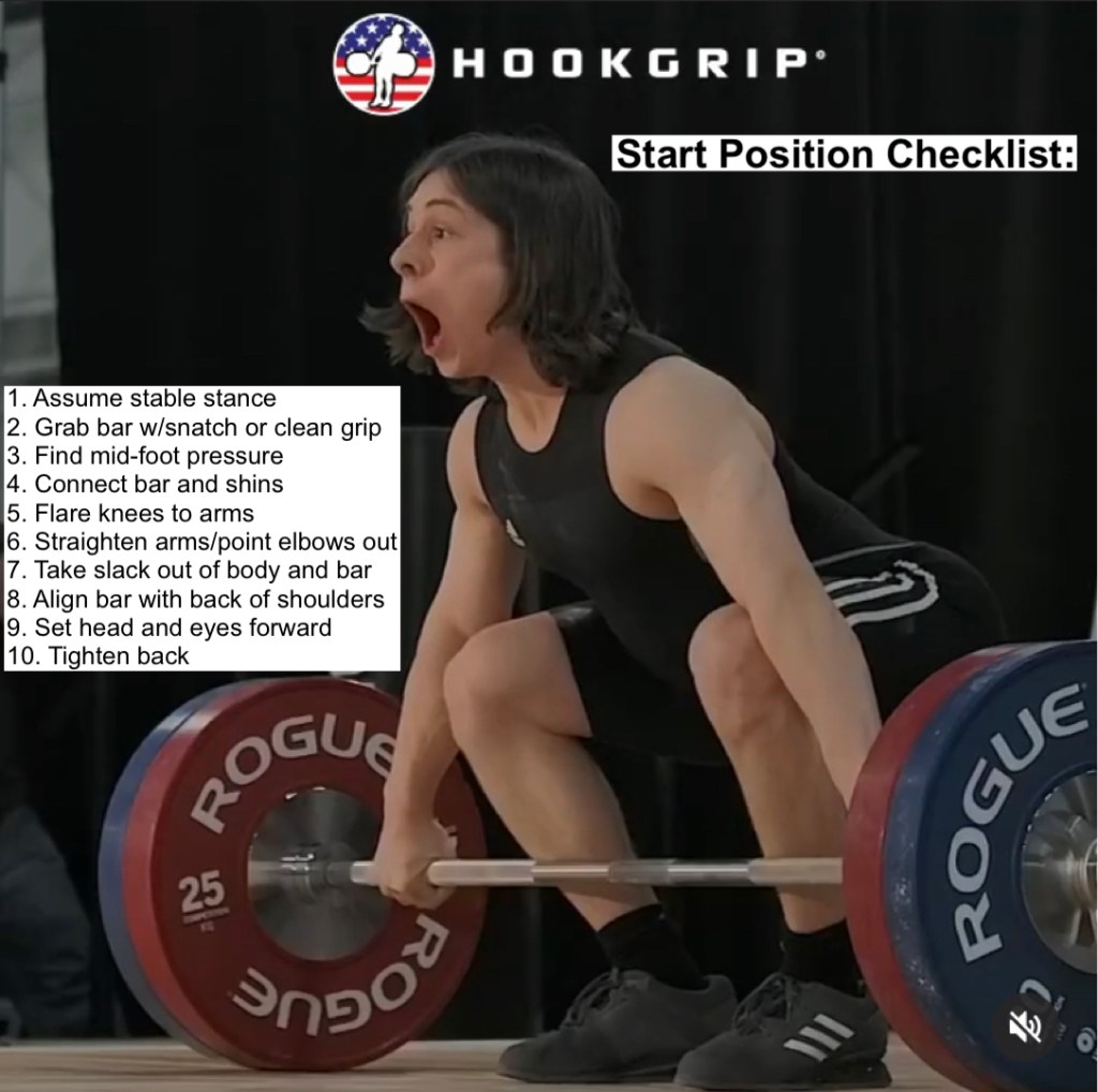 Before we do THAT though, there are still some loose ends to tie up with start position (REALLY?!) There are a few aspects outside of the checklist that you need to use to optimize and develop your start position and movement beyond (hookgrip and static start position). Additionally, there are a few critical comparisons we need to make and solidify the understanding of since they are the source of a lot of conflicting information and confusion in the community (snatch versus clean start position, and conventional deadlift start position vs snatch and clean). Time for more TRUTH!